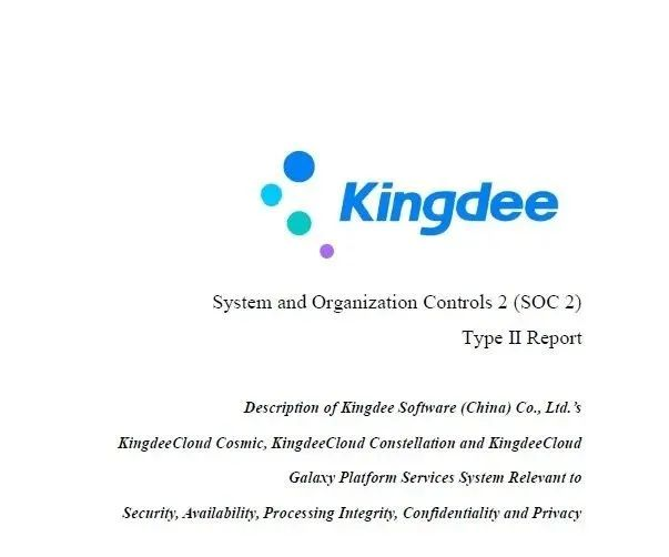 在早年已獲得SOC1 Type Ⅱ、SOC2 Type Ⅱ鑒證報(bào)告的基礎(chǔ)上,金蝶本次鑒證首次新增隱私性、進(jìn)程完整性原則的審計(jì)和鑒證。此次獲得Type II報(bào)告,進(jìn)一步證明了金蝶重視用戶隱私,其已建立的產(chǎn)品安全可信保障體系已獲得得國際權(quán)威機(jī)構(gòu)認(rèn)可。