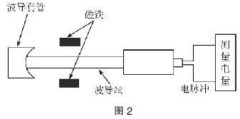 如圖2磁致伸縮位移傳感器主要包括以下幾部分:波導(dǎo)絲、保護(hù)管套、移動(dòng)磁鐵、電路板部分。測(cè)量管是整個(gè)傳感器的核心傳感部分,這一部分又包括:偏置磁鐵、波導(dǎo)絲、保護(hù)管套、末端衰減阻尼裝置、非接觸磁環(huán)、轉(zhuǎn)換器輸出。